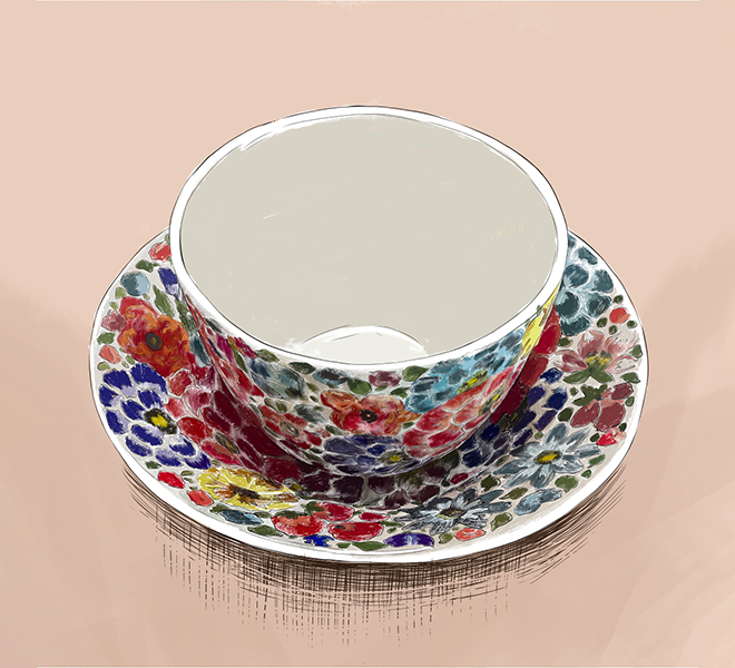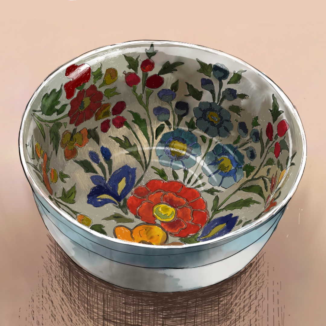 The heavily brewed salt tea, a staple in rural Kashmir, is complete only when had in Chinpyala, a sturdy cup, now not in regular use. Pyala reintroduces the bowl like cup making it aesthetically more pleasing by hand painting each Chinpyala in the traditional naqashi form. The rustic flavors of this pink tea and the vibrant designs of this uniquely crafted cup will take you to the farming fields of the Valley where this tea is still served from steaming samovars.